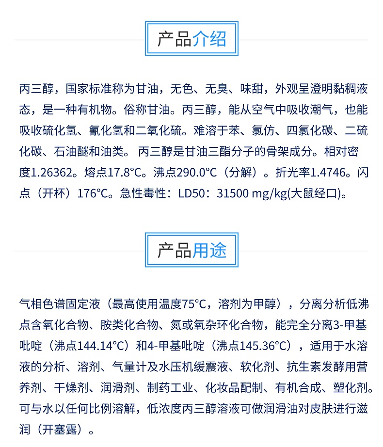 商品别名:甘油;三羟基丙烷;毛甘油;1,2,3-丙三醇